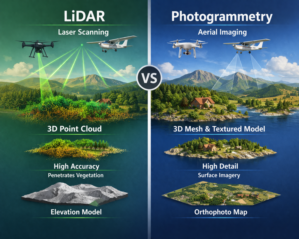 At their core, LiDAR and aerial photogrammetry differ a great deal in how they capture 3D data: